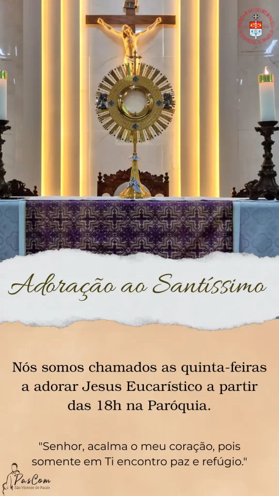 🙏 Adoração ao Santíssimo Somos chamados, às quintas-feiras, a adorar Jesus Eucarístico a partir das 18h, na Paróquia. 📖 “Senhor, acalma o meu coração, pois somente em Ti encontro paz e refúgio.” PasCom – São Vicente de Paulo