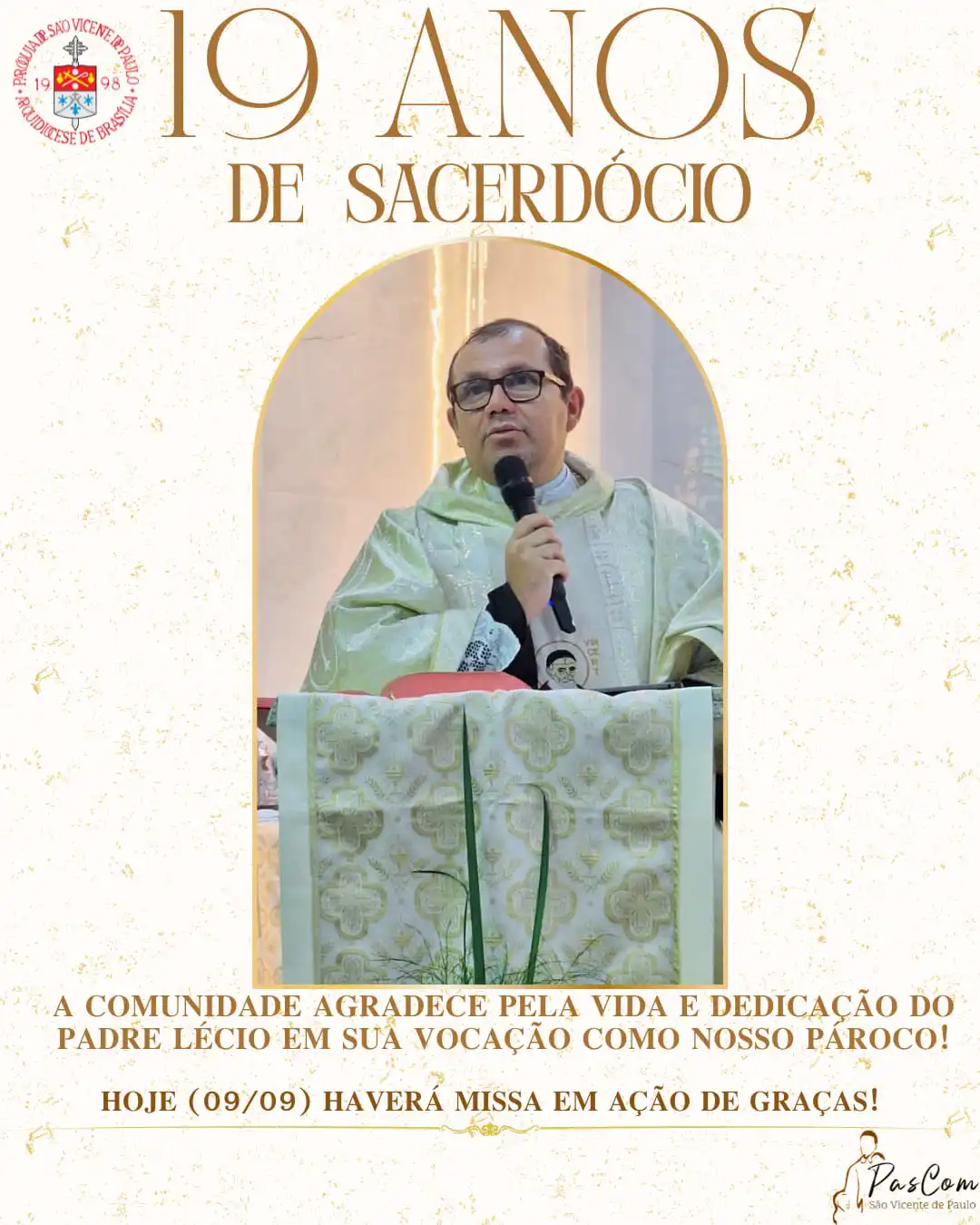 Hoje, dia 09 de dezembro, celebramos o aniversário de ordenação sacerdotal de nosso querido Padre Lécio, nosso pároco.